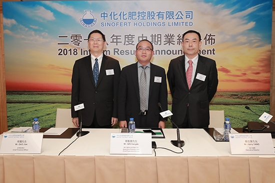 (30 August 2018, Hong Kong) Sinofert Holdings Limited ("Sinofert" or the "Company", together with its subsidiaries collectively known as the "Group") (stock code: 00297) announced the interim results for the six months ended 30 June 2018 (the "Period"). The Group’s revenue for the Period grew 24.53% year-on-year to RMB13.037 billion. Profit attributable to its shareholders substantially increased to RMB315 million when compared to the same period last year. Earnings per share climbed nearly 24 times year-on-year to RMB4.48 fen.
