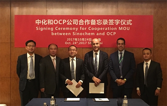 2017年10月24日,中化集團(tuán)農(nóng)業(yè)事業(yè)部總裁、中化化肥CEO覃衡德與摩洛哥OCP公司副總裁Mohamed Belhoussian在上海簽訂2017~2021年五年合作備忘錄。按約定,中化集團(tuán)將獨(dú)家代理OCP在中國的磷礦石及磷酸二銨銷售(由OCP特殊指定的渠道除外),總計(jì)數(shù)量約500萬噸,價(jià)格根據(jù)市場行情決定。此合作將由中化化肥負(fù)責(zé)具體執(zhí)行。