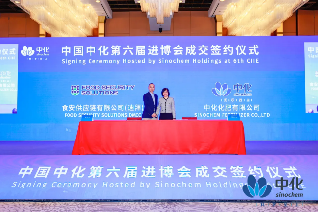本屆進博會期間,中化化肥與國際鉀肥重要供應(yīng)商食安供應(yīng)鏈有限公司(迪拜)簽署合作備忘錄。食安供應(yīng)鏈有限公司(迪拜)鉀肥年經(jīng)營量超過1200萬噸,是中國主要的鉀肥供應(yīng)商之一,與公司長期保持著良好的戰(zhàn)略合作關(guān)系,為糧食安全及我國農(nóng)業(yè)發(fā)展做出了杰出貢獻。