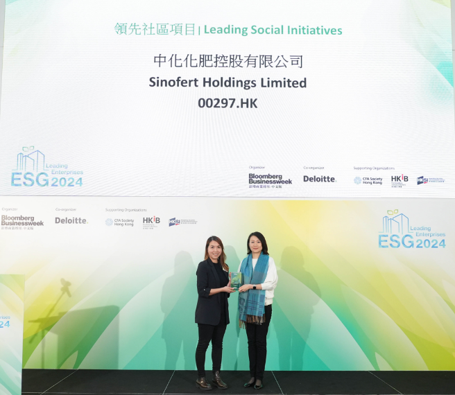 11月27日,《彭博商業(yè)周刊/中文版》與德勤聯(lián)合舉辦第六屆“ESG領(lǐng)先企業(yè)”頒獎(jiǎng)典禮,旨在表彰在環(huán)境、社會和公司治理(ESG)方面表現(xiàn)卓越的上市公司與資產(chǎn)管理機(jī)構(gòu),激勵(lì)企業(yè)積極實(shí)施ESG戰(zhàn)略,攜手推動對環(huán)境和社會具有積極影響的可持續(xù)發(fā)展進(jìn)程。期間,中化化肥控股有限公司(股票代碼:0297.HK)旗下“中化長山低碳環(huán)保綜合治理項(xiàng)目”榮獲“領(lǐng)先環(huán)保項(xiàng)目”獎(jiǎng)項(xiàng)、“第三代生物磷肥項(xiàng)目”榮獲“領(lǐng)先社區(qū)項(xiàng)目”獎(jiǎng)項(xiàng)。