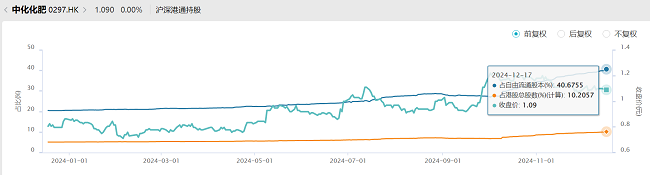 截至2024 年12月16日,中化化肥HK.00297港股通持股比例達(dá)到10.2%,這是公司自納入港股通以來首次超過10%。據(jù)了解,港股有2600余只上市公司股票,其中:主板約2293只,創(chuàng)業(yè)板約324只。目前納入港股通共有547只股票,其中:含A股的H股共145只,港股通持股占比超過總股本10%的公司只有230只股票。公司港股通持股比例顯著增長,資本市場認(rèn)可度不斷提升。