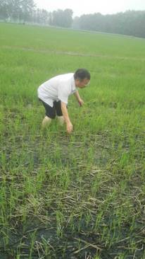 出診情況:6月18日水稻直播,畝施用18-8-15水稻專用肥40KG,目前出現(xiàn)水稻長勢弱,分蘗少的現(xiàn)象。姚老師現(xiàn)場調(diào)查診斷分析,調(diào)查結(jié)果為近階段氣溫較低,同時該田塊長期積水引起土壤缺氧,最終引起水稻生長受阻。建議農(nóng)戶立即進行排水處理。