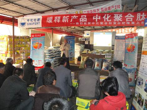 會(huì)上孟老師對(duì)我司新產(chǎn)品進(jìn)行了詳細(xì)的講解,并針對(duì)當(dāng)?shù)氐霓r(nóng)作物與農(nóng)民用肥習(xí)慣,給當(dāng)?shù)剞r(nóng)戶進(jìn)行了作物高產(chǎn)指導(dǎo),并與經(jīng)銷商、農(nóng)戶現(xiàn)場(chǎng)進(jìn)行積極地互動(dòng)。整個(gè)會(huì)議過程中氣氛相當(dāng)熱烈,取得了較好的效果,在會(huì)議推廣活動(dòng)的帶動(dòng)下,各級(jí)經(jīng)銷商當(dāng)場(chǎng)訂購(gòu)了我司聚合肽肥料40余噸。會(huì)議結(jié)束后,仍有許多經(jīng)銷商朋友留下來與孟老師還有我司同事繼續(xù)交談、詢問,表現(xiàn)出了對(duì)我司聚合肽產(chǎn)品的濃厚興趣。