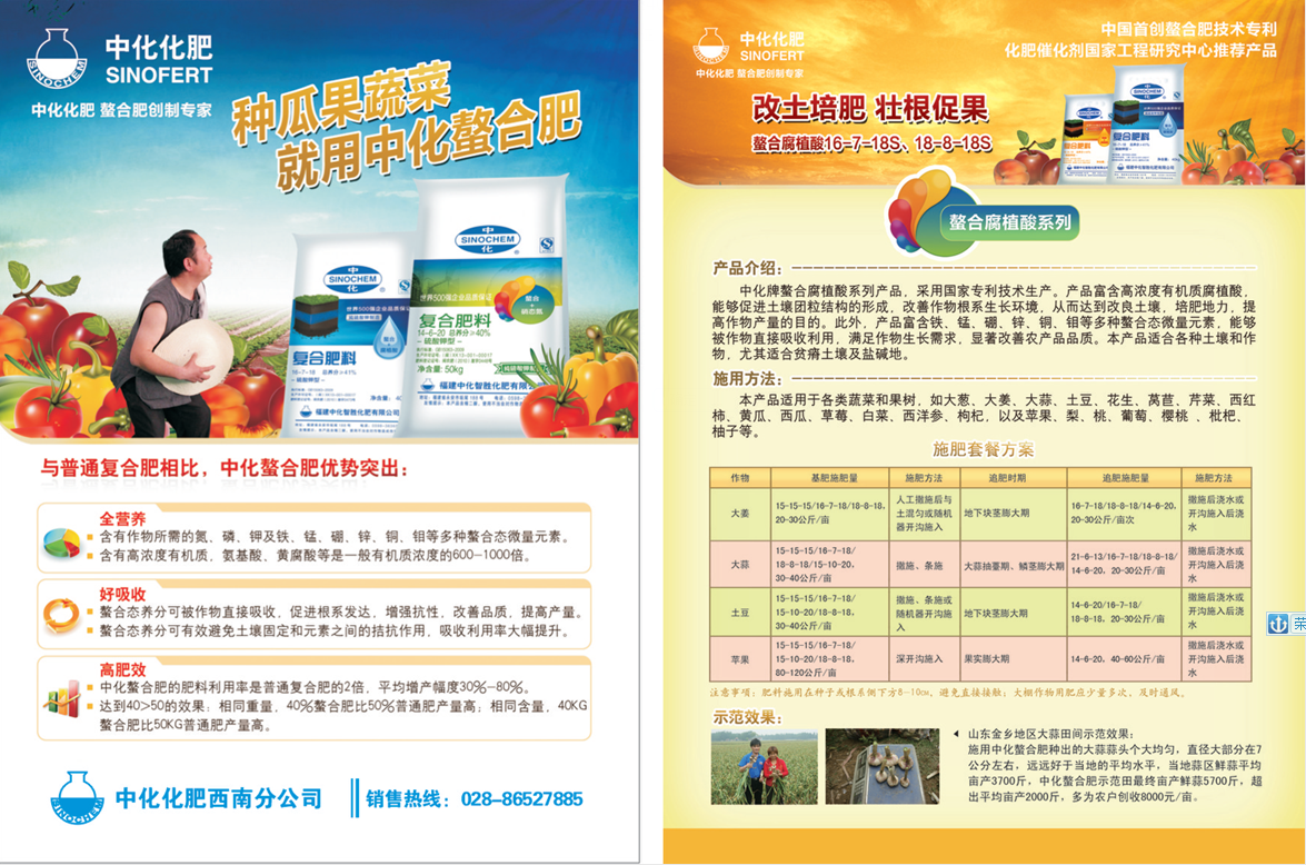 中化牌螯合腐植酸系列產(chǎn)品,采用國家專利技術(shù)生產(chǎn),產(chǎn)品富含高濃度有機(jī)質(zhì)腐植酸,能夠促進(jìn)土壤團(tuán)粒結(jié)構(gòu)的形成,改善作物根系生長環(huán)境,從而達(dá)到改良土壤,培肥地力,提高作物產(chǎn)量的目的。此外,產(chǎn)品富含鐵、錳、硼、鋅、銅、鉬等多種螯合態(tài)微量元素,能夠被作物直接吸收利用,滿足作物生長需求,顯著改善農(nóng)產(chǎn)品品質(zhì)。本產(chǎn)品適合各類土壤和作物,尤其適合貧瘠土壤及鹽堿地。