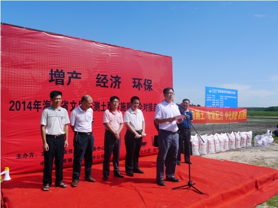 2014年6月24日,中化化肥海南分公司與海南省土壤肥科站、文昌市農(nóng)技中心聯(lián)手合辦的“2014年海南省測土配方施肥農(nóng)企對接啟動儀式”在文昌市東閣鎮(zhèn)地綠楊村委員地綠楊舉行,本次啟動會是海南分公司與政府開展測土配方施肥農(nóng)企對接工作的開始,未來三年,將以“增產(chǎn)、經(jīng)濟、環(huán)保”為目標,加快測土配方施肥技術(shù)推廣普及,強化配方肥推廣應用,推進科學施肥技術(shù)進村入戶到田。