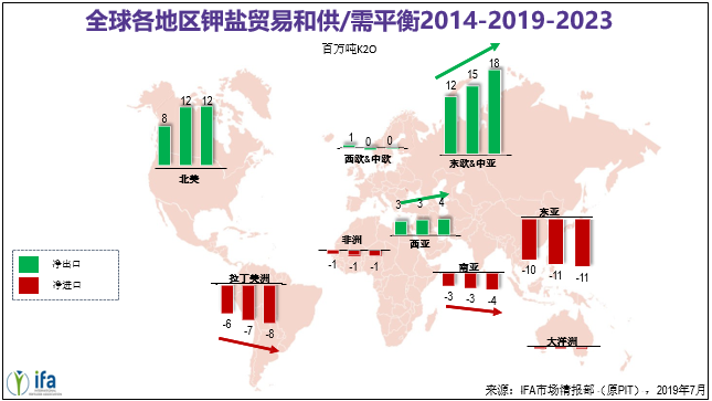 全球鉀肥資源和產(chǎn)能分布集中于加拿大、俄羅斯、白俄羅斯等國家,而需求則集中在東亞、南亞、拉丁美洲等地區(qū),呈現(xiàn)供需嚴重不對稱。