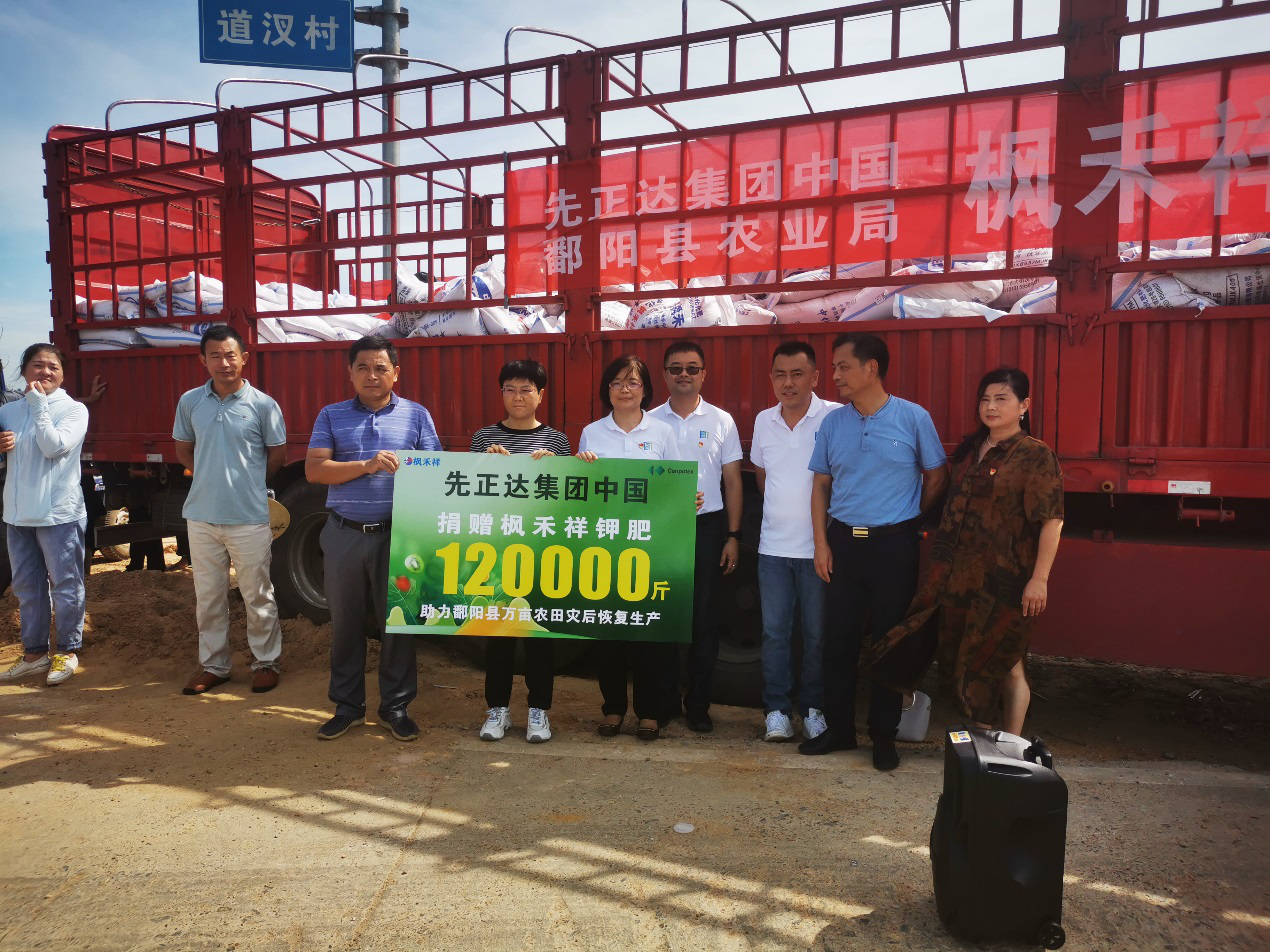 了解到鄱陽(yáng)縣的受災(zāi)情況后,基礎(chǔ)肥事業(yè)部鉀肥部和華東大區(qū)相關(guān)同事第一時(shí)間主動(dòng)聯(lián)系鄱陽(yáng)縣農(nóng)業(yè)局,希望能夠助力受災(zāi)區(qū)域農(nóng)民迅速恢復(fù)農(nóng)業(yè)生產(chǎn),為當(dāng)?shù)鼐栀?zèng)鉀肥并提供水稻種植技術(shù)支持,因?yàn)殁浄蕦?duì)晚稻生長(zhǎng)至關(guān)重要,農(nóng)民種植水稻有“早磷晚鉀”之說。8月14日江西鄱陽(yáng)縣,“中化楓禾祥鉀肥捐贈(zèng)活動(dòng)”在鄱陽(yáng)鎮(zhèn)問桂道舉行,中化化肥有限公司副總經(jīng)理陳勝男和鄱陽(yáng)縣副縣長(zhǎng)李曉云、縣農(nóng)業(yè)農(nóng)村局副局長(zhǎng)楊東、鄱陽(yáng)鎮(zhèn)鎮(zhèn)長(zhǎng)吳德政出席捐贈(zèng)儀式,現(xiàn)場(chǎng)捐贈(zèng)12萬斤楓禾祥鉀肥,將及時(shí)滿足當(dāng)?shù)厝f畝水稻田施用。同時(shí),中化化肥農(nóng)技人員對(duì)當(dāng)?shù)赝淼痉N植進(jìn)行全程技術(shù)指導(dǎo),幫助農(nóng)民科學(xué)播種、正確施肥,提高種植效率。李曉云副縣長(zhǎng)表示:感謝中化化肥有限公司贈(zèng)肥的善舉,這將有力推動(dòng)受災(zāi)區(qū)域農(nóng)業(yè)恢復(fù)生產(chǎn),促進(jìn)當(dāng)?shù)剞r(nóng)業(yè)發(fā)展。