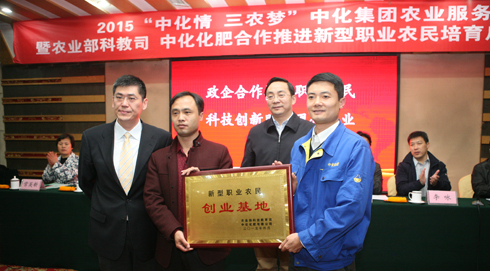 4月21日,中化集團聯(lián)手農(nóng)業(yè)部在山東臨沂舉辦“中化情 三農(nóng)夢”農(nóng)業(yè)服務(wù)暨農(nóng)業(yè)部科教司、中化化肥合作推進(jìn)新型職業(yè)農(nóng)民培育啟動儀式。中化化肥將聯(lián)合農(nóng)業(yè)部科教司、中央農(nóng)業(yè)廣播電視學(xué)校以“政企合作培育新型農(nóng)民、科技扶持助推現(xiàn)代農(nóng)業(yè)”為主題,進(jìn)一步探索政府、企業(yè)、院校聯(lián)合開展新型職業(yè)農(nóng)民培育的機制與模式。啟動儀式上,農(nóng)業(yè)部科教司和中化化肥對“新型職業(yè)農(nóng)民創(chuàng)業(yè)基地”進(jìn)行授牌,標(biāo)志著全國第一塊“新型職業(yè)農(nóng)民創(chuàng)業(yè)基地”落戶山東臨沂。