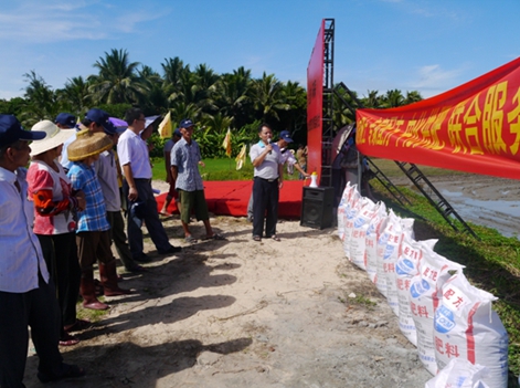 為積極落實中化化肥與農業(yè)部種植業(yè)管理司簽署《科學施肥備忘錄》精神,6月24日,由中化化肥有限公司海南分公司、海南省土壤肥料站和文昌市農技中心聯(lián)手合辦的“2014年海南省測土配方施肥農企對接啟動儀式”在文昌市東閣鎮(zhèn)地綠洋村委會地綠洋舉行。