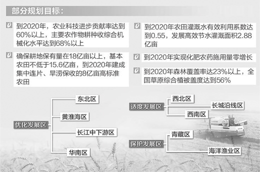 “農(nóng)為邦本”。農(nóng)業(yè)可持續(xù)發(fā)展,一方面要確保我國(guó)糧食安全保障能力可持續(xù);另一方面,要確保我國(guó)農(nóng)業(yè)資源永續(xù)利用。當(dāng)前,我國(guó)水土資源約束日益趨緊,農(nóng)業(yè)面源污染加重,農(nóng)業(yè)生態(tài)系統(tǒng)退化明顯,水土資源管理、生態(tài)補(bǔ)償?shù)润w制機(jī)制還不健全,傳統(tǒng)的農(nóng)業(yè)發(fā)展方式已難以為繼?!度珖?guó)農(nóng)業(yè)可持續(xù)發(fā)展規(guī)劃(2015—2030年)》在眾多期待中正式發(fā)布,著力讓現(xiàn)代農(nóng)業(yè)發(fā)展插上可持續(xù)的翅膀。農(nóng)業(yè)部部長(zhǎng)韓長(zhǎng)賦對(duì)規(guī)劃作出了解讀。 亮點(diǎn)一:農(nóng)業(yè)發(fā)展盡快轉(zhuǎn)到注重提高質(zhì)量和效益的集約經(jīng)營(yíng)上來(lái) 韓長(zhǎng)賦表示,黨中央、國(guó)務(wù)院高度重視農(nóng)業(yè)可持續(xù)發(fā)展。按照國(guó)務(wù)院部署,農(nóng)業(yè)部會(huì)同國(guó)家發(fā)展改革委、科技部、財(cái)政部、國(guó)土資源部、環(huán)境保護(hù)部、水利部、林業(yè)局等部門(mén),在深入基層調(diào)研、組織專家論證的基礎(chǔ)上,共同編制了《全國(guó)農(nóng)業(yè)可持續(xù)發(fā)展規(guī)劃(2015—2030年)》。這是今后一個(gè)時(shí)期指導(dǎo)農(nóng)業(yè)可持續(xù)發(fā)展的重要文件。 “《規(guī)劃》明確了農(nóng)業(yè)可持續(xù)發(fā)展的指導(dǎo)思想,就是要加快發(fā)展資源節(jié)約型、環(huán)境友好型和生態(tài)保育型農(nóng)業(yè),切實(shí)轉(zhuǎn)變農(nóng)業(yè)發(fā)展方式,從依靠拼資源消耗、拼農(nóng)資投入、拼生態(tài)環(huán)境的粗放經(jīng)營(yíng),盡快轉(zhuǎn)到注重提高質(zhì)量和效益的集約經(jīng)營(yíng)上來(lái)。”韓長(zhǎng)賦說(shuō)。 《規(guī)劃》明確了五條基本原則,就是要堅(jiān)持生產(chǎn)發(fā)展與資源環(huán)境承載力相匹配;堅(jiān)持創(chuàng)新驅(qū)動(dòng)與依法治理相協(xié)同;堅(jiān)持當(dāng)前治理與長(zhǎng)期保護(hù)相統(tǒng)一;堅(jiān)持試點(diǎn)先行與示范推廣相統(tǒng)籌;堅(jiān)持市場(chǎng)機(jī)制與政府引導(dǎo)相結(jié)合。 亮點(diǎn)二:2030年農(nóng)業(yè)可持續(xù)發(fā)展的新格局基本確立 怎么看《規(guī)劃》中說(shuō)的“農(nóng)業(yè)可持續(xù)發(fā)展新格局”? 韓長(zhǎng)賦表示,《規(guī)劃》對(duì)未來(lái)一個(gè)時(shí)期農(nóng)業(yè)可持續(xù)發(fā)展做了整體的宏觀設(shè)計(jì),既有時(shí)間表,又有路線圖;既有階段性目標(biāo),又有區(qū)域性布局。 到2020年,農(nóng)業(yè)可持續(xù)發(fā)展取得初步成效,經(jīng)濟(jì)、社會(huì)、生態(tài)效益明顯。農(nóng)業(yè)發(fā)展方式轉(zhuǎn)變?nèi)〉梅e極進(jìn)展,農(nóng)業(yè)綜合生產(chǎn)能力穩(wěn)步提升,農(nóng)業(yè)結(jié)構(gòu)更加優(yōu)化,農(nóng)產(chǎn)品質(zhì)量安全水平不斷提高,農(nóng)業(yè)資源保護(hù)水平與利用效率顯著提高,農(nóng)業(yè)環(huán)境突出問(wèn)題治理取得階段性成效,森林、草原、湖泊、濕地等生態(tài)系統(tǒng)功能得到有效恢復(fù)和增強(qiáng),生物多樣性衰減速度逐步減緩。 到2030年,農(nóng)業(yè)可持續(xù)發(fā)展取得顯著成效。供給保障有力、資源利用高效、產(chǎn)地環(huán)境良好、生態(tài)系統(tǒng)穩(wěn)定、農(nóng)民生活富裕、田園風(fēng)光優(yōu)美的農(nóng)業(yè)可持續(xù)發(fā)展新格局基本確立。 亮點(diǎn)三:農(nóng)業(yè)可持續(xù)發(fā)展將分區(qū)域布局、梯次推進(jìn)、分類施策 農(nóng)業(yè)可持續(xù)發(fā)展為什么要分區(qū)域布局和推進(jìn)? 韓長(zhǎng)賦介紹說(shuō),《規(guī)劃》要求根據(jù)各地農(nóng)業(yè)可持續(xù)發(fā)展面臨的問(wèn)題,綜合考慮各地農(nóng)業(yè)資源承載力、環(huán)境容量、生態(tài)類型和發(fā)展基礎(chǔ)等因素,將全國(guó)劃分為優(yōu)化發(fā)展區(qū)、適度發(fā)展區(qū)和保護(hù)發(fā)展區(qū)。要按照因地制宜、梯次推進(jìn)、分類施策的原則,確定不同區(qū)域的農(nóng)業(yè)可持續(xù)發(fā)展方向和重點(diǎn)。 優(yōu)化發(fā)展區(qū)包括東北區(qū)、黃淮海區(qū)、長(zhǎng)江中下游區(qū)和華南區(qū),是我國(guó)大宗農(nóng)產(chǎn)品主產(chǎn)區(qū),農(nóng)業(yè)生產(chǎn)條件好、潛力大,但也存在水土資源過(guò)度消耗、環(huán)境污染、農(nóng)業(yè)投入品過(guò)量使用、資源循環(huán)利用程度不高等問(wèn)題。要堅(jiān)持生產(chǎn)優(yōu)先、兼顧生態(tài)、種養(yǎng)結(jié)合,在確保糧食等主要農(nóng)產(chǎn)品綜合生產(chǎn)能力穩(wěn)步提高的前提下,保護(hù)好農(nóng)業(yè)資源和生態(tài)環(huán)境,實(shí)現(xiàn)生產(chǎn)穩(wěn)定發(fā)展、資源永續(xù)利用、生態(tài)環(huán)境友好。 適度發(fā)展區(qū)包括西北及長(zhǎng)城沿線區(qū)、西南區(qū),農(nóng)業(yè)生產(chǎn)特色鮮明,但生態(tài)脆弱,水土配置錯(cuò)位,資源性和工程性缺水嚴(yán)重,資源環(huán)境承載力有限,農(nóng)業(yè)基礎(chǔ)設(shè)施相對(duì)薄弱。要堅(jiān)持保護(hù)與發(fā)展并重,立足資源環(huán)境稟賦,發(fā)揮優(yōu)勢(shì)、揚(yáng)長(zhǎng)避