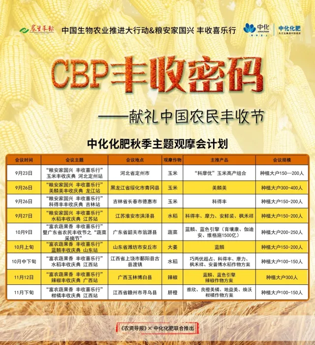 據(jù)介紹,接下來(lái)中化化肥將圍繞玉米、水稻、大姜、辣椒、臍橙等作物,開(kāi)展“糧安家國(guó)興 豐收喜樂(lè)行”“富農(nóng)蔬果香 豐收喜樂(lè)行”系列活動(dòng),覆蓋全國(guó)重要的農(nóng)業(yè)產(chǎn)區(qū),一起踏上豐收之旅!