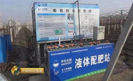 一桶就有一噸重,通過這個管道把大桶中的肥料導入田間水肥一體化的肥料桶中。中化公司2016年5月開始推廣以噸桶的形式配送肥料,短短6個月不到的時間,就在安徽省建了20座這樣的配肥站,發(fā)貨60噸。