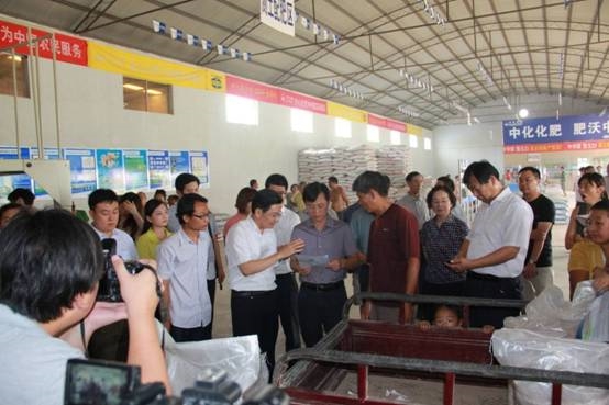 中化化肥作為國家農(nóng)業(yè)部測土配肥農(nóng)企對接的重點(diǎn)企業(yè),積極推動測土 配方活動。2012年,河南分公司成立中化化肥溫縣農(nóng)業(yè)科技示范中心,引進(jìn)先進(jìn)的大型智能配肥機(jī),形成個性配方生成、肥料配制、混合、包裝為一體的綜合配 肥工作站。通過為農(nóng)民免費(fèi)提供測土配方服務(wù),輔助農(nóng)化講座、集市宣傳、示范田建設(shè)等宣傳活動,使農(nóng)戶認(rèn)可并接受測土配方,解決配方肥下地的最后一公里問 題?;顒拥拈_展引起農(nóng)業(yè)部高度重視,農(nóng)業(yè)部種植管理司副司長胡元坤親自參觀考察示范中心,了解經(jīng)營模式和測土配肥工作的開展情況。