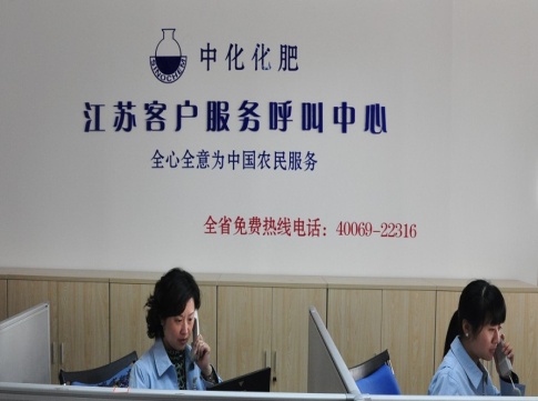2012年5月,中化化肥江蘇客戶服務呼叫中心(40069-22316)正式成立運行。旨在為全省農(nóng)民、種植大戶、各級經(jīng)銷商提供免費的信息服務,提升基層農(nóng)民的科學施肥水平,建立專業(yè)、及時、全面的一站式購肥渠道。