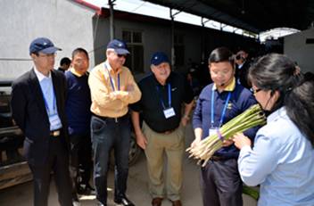 隨后,參觀團參觀了中化化肥蘆筍示范田和草莓示范田。在示范田,馬總向嘉賓們詳細地介紹了中化化肥示范田建設的流程,從選址、測土、配肥、實驗對比到收獲采摘,中化化肥農技人員全程參與跟蹤,設計施肥套餐,不僅提高產品品質,還實現(xiàn)了增產增收的效果。參觀團認真地聽著馬總的介紹,還饒有興致地與采摘蘆筍的農民交流,對示范田出產的蘆筍嘖嘖稱贊,在草莓示范田,嘉賓們不顧腳下泥土,深入示范田草莓大棚,品嘗了螯合肥種植出來的草莓,不住點頭稱贊。雖然操著異國語言,但是臉上洋溢的笑容和豎起的大拇指,無一不在告訴著我們---中化化肥,好樣的!