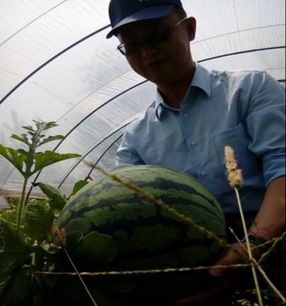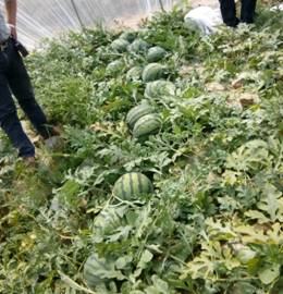 目前戴長慶已出西瓜三個大棚(一個棚約1.2畝),售出11.76噸,目前這三個大棚仍有約5噸西瓜在藤,西瓜均重在7公斤。