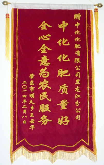 到了肇東市王云華先生贈送的一面有:“中化化肥質(zhì)量好,全心全意為農(nóng)民服務(wù)”的錦旗,以表達對我司產(chǎn)品的充分肯定。