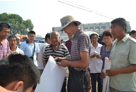 當(dāng)?shù)胤N植大戶和科技示范戶頂著炎炎烈日風(fēng)塵仆仆趕到集市,看著憑種地將汽車開回家的王晶王大哥,流露著羨慕的目光,我想大爺大哥們心里都牟足了勁想甩開膀子開汽車回家;通過有獎問答將中化化肥的暖水瓶、T恤衫、手提袋攬入懷中的同時,種田水平得到進(jìn)一步提升,豐產(chǎn)豐收在即。