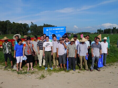 2014年7月3日,海南分公司中化智勝螯合肥套餐黑美人西瓜實驗示范田觀摩會在東方市八所鎮(zhèn)居龍新村圓滿召開。此次活動邀請了當(dāng)?shù)亟?jīng)銷商、西瓜種植大戶共30余人參加。