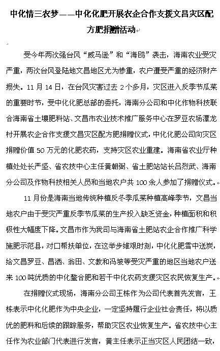 中化化肥開展農(nóng)企合作支援文昌災(zāi)區(qū)配方肥捐贈(zèng)活動(dòng)